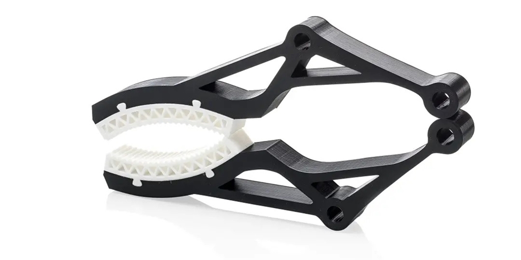 工業(yè)用的3D列印零件需要長時(shí)間承受壓力、撞擊,同時(shí)也必須保護(hù)輸送、加工的產(chǎn)品;以夾具為例,需要有堅(jiān)固耐用的結(jié)構(gòu)、附有彈性的內(nèi)層,來達(dá)到最好的機(jī)械功能性,以雙噴頭3D列印來同時(shí)列印兩種材料,不但節(jié)省成本、單次列印即可完成!