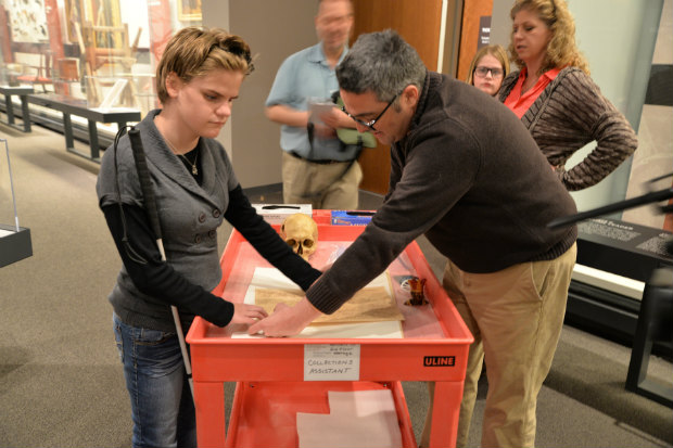 博物館可以提供觸覺材料給視障能夠體驗(yàn)的機(jī)會(huì)(能夠讓無法參與博物館的參觀者用(觸摸)的感受歷史