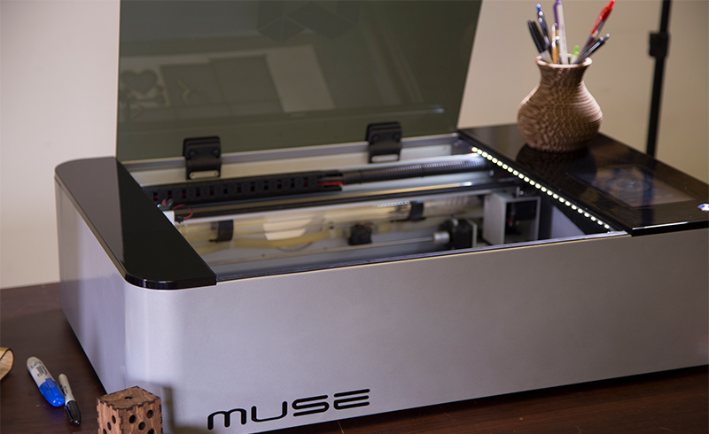 以往Ann是採(cǎi)取全手工製作,直到發(fā)現(xiàn)雷射切割機(jī)能大幅增加作品產(chǎn)量,她開(kāi)始嘗試許多工具來(lái)實(shí)踐她的「量化生產(chǎn)」,由於袖扣和其他珠寶不需要大型的雷射加工機(jī),桌上型雷射加工機(jī)的大小更適合她的工作室、依然能提供專業(yè)的品質(zhì),而且便宜得多。最後她選擇使用輕量、精簡(jiǎn)的Muse雷射切割機(jī)。此外,Ann經(jīng)常參加Maker-Faires來(lái)開(kāi)發(fā)顧客並增加工藝品的銷量,由於大小合適,她甚至能使用雷射加工機(jī)進(jìn)行現(xiàn)場(chǎng)製作,這能同時(shí)吸引人潮並為她增加更多訂單。