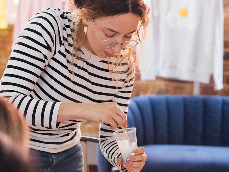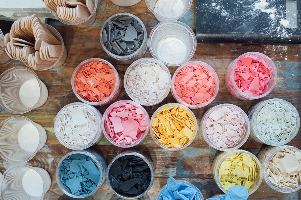 接下來(lái)將凝固後的水磨石碎塊,依照自己的喜好調(diào)配用量、顏色,倒入Jesmonite樹(shù)脂中均勻攪拌;最後再將所有材料倒入真空成型的模具中,完全凝固後再經(jīng)過(guò)打磨加工,高品質(zhì)的自製杯墊就完成了!你也能舉一反無(wú)限,設(shè)計(jì)屬於你的各種容器、托盤、盆栽等居家裝飾品。