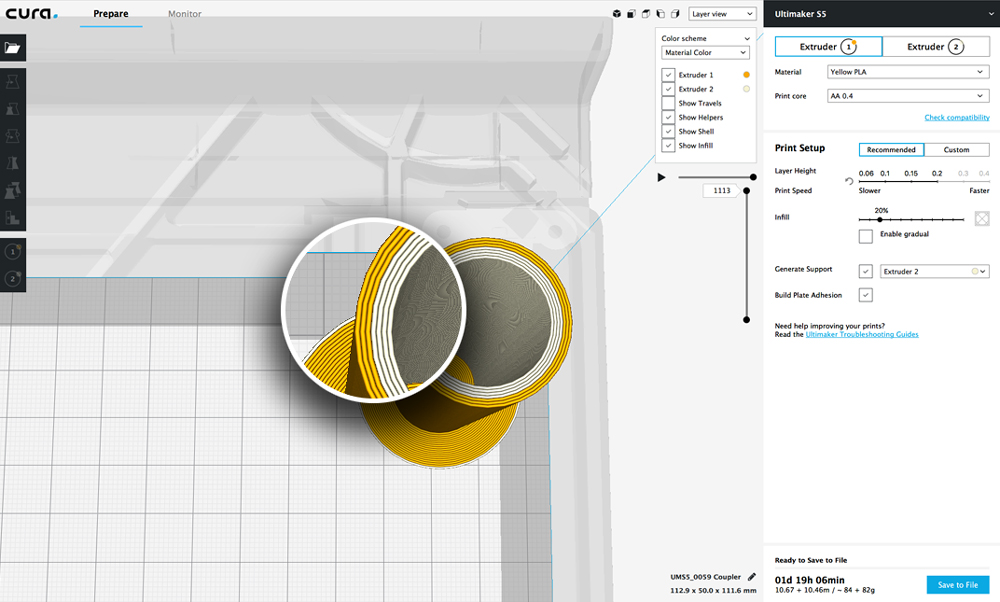 Ultimaker Cura 3.5挾帶最新功能和極佳切片性能,適用Windows、MacOS和Linux??炜葱掳姹居心男┛旌轀实?D列印體驗? 快速導覽Ultimaker Cura 3.5有什麼新功能? .快速鍵 使用快速鍵切換模型操作工具,以獲得更好的用戶體驗 .監(jiān)控畫面 重新設計的Ultimaker Cura監(jiān)控畫面,以便與Cura Connect更加一致。 .3MF檔案格式 不再使用「curaproject」擴增程序,所有Ultimaker Cura檔案現(xiàn)在都能以3MF格式保存,能與其他3D軟體更相容。 新的使用者體驗 .檔案選單:我們已經(jīng)改變了檔案選單的形式;「保存」為現(xiàn)在儲存該檔案,「匯出」則是將模型保存為另一種檔案格式。 .新工具快速鍵:已指定快速鍵用於平移(T)、縮放(S)、旋轉(R)和鏡像(M)工具之間的快速切換。 .開啟最近的項目:現(xiàn)在可以在「開啟最近…」選單中找到您最近一次的檔案以及常用模型。 .材料偏好:現(xiàn)在可以將材料設置到資料夾,因此可以在右上角的材料選單面板中快速的找到它。 .監(jiān)控頁面:Ultimaker Cura的監(jiān)控頁面經(jīng)過改良設計,與Cura Connect的「列印作業(yè)」界面更加一致;減少轉換的銜接時間,強化Ultimaker Cura內部的控制性。 .保存項目:保存項目不再重新切片,是需要長時間切片檔案的理想選擇! .切片增強功能 改善垂直建構面處理:自動檢測垂直建構面並以不同的速度列印,並且不會在懸空的部份開始列印。以不同的速度列印不同的建構面可以提供更高品質和穩(wěn)定的成品。 .最小多邊形周長 周長小於設定值的切片層多邊形會被過濾掉,數(shù)值愈小愈能創(chuàng)造高分辨率的結果,但會增加切片時間;這個設定適用於具有大量細節(jié)的小規(guī)模列印或SLA列印機。 .設定底層支撐密度 該設定能夠增減底層支撐材的密度,以調整對加熱板的附著力和整體強度。 .額外的填充建構面 這會在填充區(qū)域周圍增加額外的垂直建構面,這有助於支撐頂部/底部的表面線條以減少下垂。讓您減少頂部或底部表層列印也能獲得相同品質,但需要消耗一些額外的材料。 .穩(wěn)固主體 使用兩種不易黏附的材料進行列印可能會導致主體列印失敗,因此我們重新利用主體來生成一種材料的外殼並作為第二種材料的附著空間,測試後比以前更堅固穩(wěn)定。 .多次填充 在同一個圖面上生成多個填充線讓主體更堅固。 .連接填充的多邊形 與連接填充線類似,現(xiàn)在可以將同一層的多邊形支撐連接在一起;此功能可與「多次填充」和「額外填充」結合使用,以確保任何填充圖案的連續(xù)模式。 .風扇速度覆蓋。 在「支撐設定」選單中的「風扇速度覆蓋」下,添加了一個新設定來修改橋接區(qū)域的風扇速度,這僅在使用支撐材料的時候有效。 .最小壁厚 「外殼」類別中添加了一個新設定,用於定義薄殼列印面的最小值。 .支撐填充線方向 現(xiàn)在可以旋轉支撐填充線以增加支撐功能並減少模型上的瑕疵,這個設定可旋轉現(xiàn)有圖案:例如三角形支撐填充。 新的外掛程式 .Cura設置指南 一個詳細、可搜索的Cura索引,包含圖像以供參考。 .自訂支撐 停止自動生成支撐的工具,透過選取部分來手動添加想要的支撐部分。 .快速切換自動切片 添加切換按鈕以快速啟用/禁用自動切片。 .標題欄中的版本 在應用程序標題欄中顯示版本以便快速參考。 .支援外部列印機 為TiZYX、Winbo、Tevo Tornado、Creality CR-10S和Wanhao Duplicator添加了新的預設文件。 Deltacomb和Dacoma的設定也已經(jīng)更新。 .錯誤修復 為了獲得更好的穩(wěn)定性和性能,我們在此版本中修復了各種錯誤。這包括刪除GCODE中多餘的M109命令和不必要的動作,改善額外的表面建構數(shù)量和列印模型的順序等等。 感謝smartavionics、fieldOfView、BagelOrb、Kriechi、MarmaladeForMeat和cubic的貢獻。我們還要特別感謝所有幫助我們?yōu)榇税姹咎峁┳罴延脩趔w驗的測試人員。 更棒的是,這是免費的!立即免費下載Ultimaker Cura最新版,或者逛逛我們的其他頁面了解3D列印的資訊及最新消息。 所有最新資訊會優(yōu)先公布於粉絲專頁,歡迎追蹤我們讓您持續(xù)獲得新資訊。 粉絲專頁:https://www.facebook.com/www.yztcys.cn/ 原文連結:https://ultimaker.com/en/blog/52726-new-3d-printing-features-ultimaker-cura-35-is-here?utm_campaign=coschedule&utm_source=facebook_page&utm_medium=Ultimaker&utm_content=New%203D%20printing%20features:%20Ultimaker%20Cura%203.5%20is%20here%20|%20Ultimaker