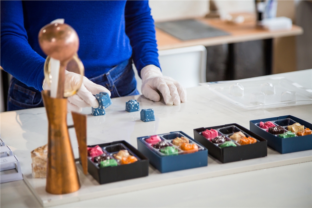 Paul A. Young聞名於他們的工藝巧克力,這間發(fā)源於英國.伊斯靈頓的巧克力連鎖店,以真正的手工藝方式創(chuàng)作,每個階段都用小量的新鮮食材。為了創(chuàng)造更多創(chuàng)意變化,他們開始使用Mayku FormBox和3D列印機為一系列幾何巧克力系列製作模具。