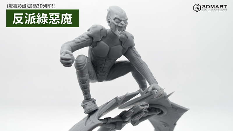 驚喜彩蛋!除了蜘蛛人我們還加碼3D列印,電影中的反派角色「綠惡魔」組裝模型,3D列印總時間為30小時: