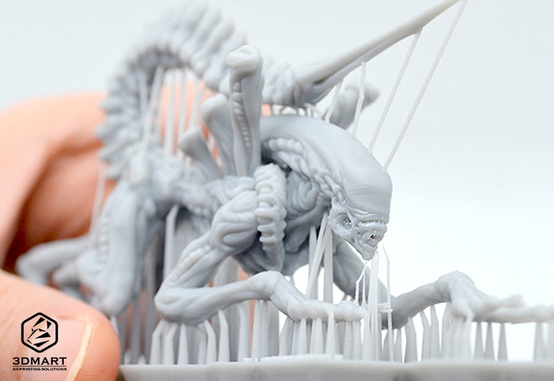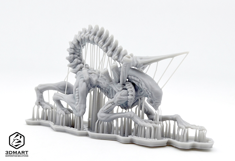至於大家最關(guān)心的實(shí)測(cè)效果,我們使用Phrozen原廠的類ABS灰色樹(shù)脂,經(jīng)過(guò)3小時(shí)的列印後「異形」就此誕生;初步從列印平臺(tái)上觀察,模型的細(xì)節(jié)和表面都很完整,支撐皆能順利生長(zhǎng)。