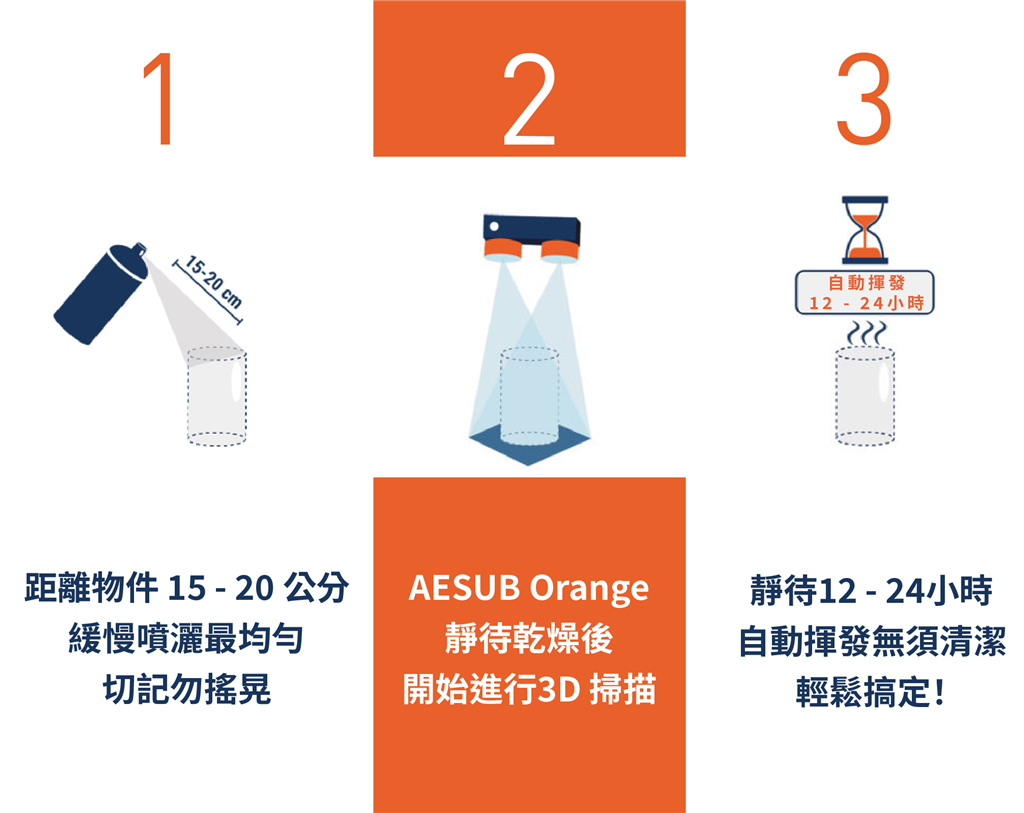 第二步﹔AESUB Orange 靜待乾燥後,開始進(jìn)行 3D 掃描