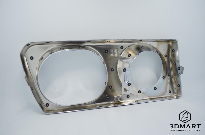 【3D掃描】後車(chē)燈金屬件掃描實(shí)測(cè)文 先前我們也用過(guò)3D掃描器掃描過(guò)機(jī)車(chē)車(chē)殼,不知道各位還有沒(méi)有印象? 車(chē)殼最讓人驚豔的就是背後細(xì)節(jié)度的呈現(xiàn),連接的細(xì)微孔洞都有非常完整的被掃描出來(lái)。 這次同樣的也將為各位介紹與車(chē)子相關(guān)的零件-汽車(chē)後車(chē)燈外殼, 首先來(lái)看看要掃描的物件造型吧,前方有兩個(gè)洞為放置車(chē)燈的區(qū)塊,在後方則是有多出一個(gè)把手的部分。 由於物件是金屬高反光的材質(zhì),因此我們需要先貼上掃描定位貼紙,貼完後再進(jìn)行噴粉。 掃描定位貼紙的在貼時(shí)要注意盡量不要讓它的位置太過(guò)規(guī)則,不要太整齊,點(diǎn)貼得越密集也更能掃出精準(zhǔn)的效果。 前面與背面記得都要貼好貼滿唷~ 經(jīng)過(guò)一段時(shí)間掃描後,完成的3D模型檔案