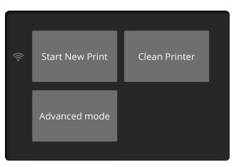 打開Sinterit Lisa後,將顯示啟動屏幕,共有三個功能「開始新列印」、「清潔列印機」和「高級模式」(以前的軟體版本)。