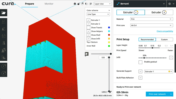 【3D列印軟體】發(fā)布Ultimaker Cura 3.3 beta測(cè)試版 Ultimaker Cura 3.3 beta已經(jīng)發(fā)布了。立即下載可發(fā)現(xiàn)一組新功能、外掛、錯(cuò)誤修復(fù)及對(duì)第三方列印機(jī)的更多支援。 Ultimaker Cura 3.3 beta有哪些新功能? ●新字體,更好的螢?zāi)灰鬃x性及與Cura Connect的統(tǒng)一 ●外掛瀏覽器的新外觀 ●環(huán)形主塔提供更可靠的雙重?cái)D壓體驗(yàn) ●支撐方塊,能更好地控制支撐材料的長出位置 ●新選項(xiàng)禁用Ultimaker 3的擠出機(jī),解鎖「一次列印一個(gè)」的模式 請(qǐng)注意:我們已經(jīng)徹底測(cè)試過這個(gè)版本,它提供了很好的功能和改進(jìn)。然而,它仍處於測(cè)試階段,我們不能保證與測(cè)試版與穩(wěn)定版本具有相同的列印可靠性。 如果您正在開發(fā)一個(gè)重要項(xiàng)目,我們強(qiáng)烈建議您使用Ultimaker Cura的穩(wěn)定版本。 UX的改進(jìn) 更新字體。預(yù)設(shè)字體已更改為NotoSans,提升Cura Connect的易讀性和一致性。字體更新同時(shí)也修復(fù)了Mac OSX上一些渲染問題。 字體已更新為NotoSans 配置/同步按鈕。配置和同步按鈕現(xiàn)在可用於網(wǎng)路連接的列印機(jī),以同步Cura Connect群組中的所有可用設(shè)置。 群組主機(jī)名稱將自動(dòng)從API中提取,網(wǎng)路列印機(jī)和本地列印機(jī)在列表中會(huì)分開。 顯示連接列印機(jī)的兼容設(shè)置 設(shè)定易讀性預(yù)設(shè)值。 預(yù)設(shè)值會(huì)導(dǎo)覽您找出最重要的設(shè)置。一個(gè)小選單位於搜尋欄位的旁邊,可以輕鬆的設(shè)定易讀性預(yù)設(shè)值。 模型幫手。使用ABS、PC、PP或CPE+列印的尺寸大於15 x 15 x 15公分的模型會(huì)開啟提示,告知用戶它們能如何獲得最佳結(jié)果。 增加模型速度更快。 增加模型時(shí)速度明顯增加。 顯示不可設(shè)置檔案的工具提示。 如果建議模式下的設(shè)置檔案顯示灰色,工具提示會(huì)通知用戶原因。 Ultimaker 3的未放置材料時(shí)。當(dāng)Ultimaker 3上的材料沒有裝入擠出機(jī)時(shí),它會(huì)顯示成「空」而不是「未知」。 優(yōu)化切片引擎 單一擠出機(jī)模式。 禁用Ultimaker 3上的擠出機(jī)進(jìn)行單次擠出列印。 在右側(cè)面板中,右鍵單擊所需的擠出機(jī),然後選擇「禁用擠出機(jī)」以禁用它。 通過點(diǎn)擊右鍵選擇「啟動(dòng)擠出機(jī)」來重新啟動(dòng)它。 列印設(shè)置檔案會(huì)針對(duì)啟用的擠出機(jī)進(jìn)行優(yōu)化以及全部設(shè)定,例如列印平臺(tái)溫度,以實(shí)現(xiàn)更好的列印品質(zhì)。 使用單一擠出模式還可以為Ultimaker 3或其他雙擠出列印機(jī)提供「一次列印一個(gè)」的功能。 圓形主塔。 主塔現(xiàn)在是圓形的。 圓形主塔路徑使列印的動(dòng)作更加輕鬆,結(jié)構(gòu)更牢固,層間黏著度更好,並且可以更好黏著在列印平臺(tái),減少失敗的可能性。 圓形主塔讓列印噴頭運(yùn)行的更平滑且更加堅(jiān)固 連接的填充線。 網(wǎng)格和三角形填充圖形現(xiàn)在具有連接線以達(dá)成更穩(wěn)定的流動(dòng),更好的模型、剛性及減少對(duì)外壁品質(zhì)的影響。 支撐方塊。產(chǎn)生一個(gè)立方體網(wǎng)格來防止模型在特定區(qū)域產(chǎn)生支撐材料??墒褂脴?biāo)準(zhǔn)的調(diào)整工具縮放,旋轉(zhuǎn)和移動(dòng)立方體來符合用戶的要求。 使用支撐方塊來防止特定區(qū)域產(chǎn)生支撐 真正的橋接。 新的實(shí)驗(yàn)性功能可檢測(cè)橋樑,調(diào)整列印速度和風(fēng)扇速度以提升橋接部件的列印質(zhì)量。 更新CuraEngine可執(zhí)行檔案。 CuraEngine可執(zhí)行檔案現(xiàn)在包含專用圖示,作者資訊和證照。 使用系統(tǒng)庫的RapidJSON和ClipperLib。 應(yīng)用程序更新為使用經(jīng)過驗(yàn)證的資料庫副本,減少了維護(hù)的時(shí)間(因?yàn)楝F(xiàn)在由操作系統(tǒng)負(fù)責(zé)),並減少了代碼量(因?yàn)槿绻呀?jīng)在用戶系統(tǒng)上,就不需要重新分發(fā))。 壓縮的gcode。 從Ultimaker Cura儲(chǔ)存的Gcode現(xiàn)在被壓縮以節(jié)省容量(使用gzip)。 改善列印行為 初始層流量。 「材料」類別中的新設(shè)定可以調(diào)整初始圖層流量,以便用戶能更好地控制。 最初移動(dòng)運(yùn)行的回縮。 縮回已增加到最初的運(yùn)行移動(dòng)中,減少在列印邊緣/裙側(cè)前,斑點(diǎn)出現(xiàn)在零件上的機(jī)會(huì)。 不必要的回縮。 消除螺旋模式下圖層變化的回縮,提高模型質(zhì)量。 更快的運(yùn)行路徑。 至目前為止,路徑順序優(yōu)化器的工作原理是採用從一個(gè)點(diǎn)至另一個(gè)點(diǎn)的最短路線。當(dāng)使用梳理時(shí),由於需要繞過障礙物,任何路線可能會(huì)需要更長的時(shí)間。 現(xiàn)在,可以使用精梳距離來取得更一致的結(jié)果。 更新外掛 外掛瀏覽器的外觀和感覺。 外掛瀏覽器已經(jīng)更新,具有更好的外觀和感覺,讓他與其他UI元素保持一致。作者姓名可點(diǎn)擊,開啟電子郵件直接聯(lián)繫作者以尋求支援。 現(xiàn)在也可以使用卸載按鈕來卸載外掛。 新的外掛。 Ultimaker Cura增加了三個(gè)新的外掛:可擴(kuò)充的額外素材、列印溫度調(diào)整和關(guān)閉風(fēng)扇。 預(yù)熱擠出機(jī)。新功能可以在列印機(jī)監(jiān)測(cè)器中預(yù)熱。 將TweakAtZ重命名為'ChangeAtZ'。 腳本已被
