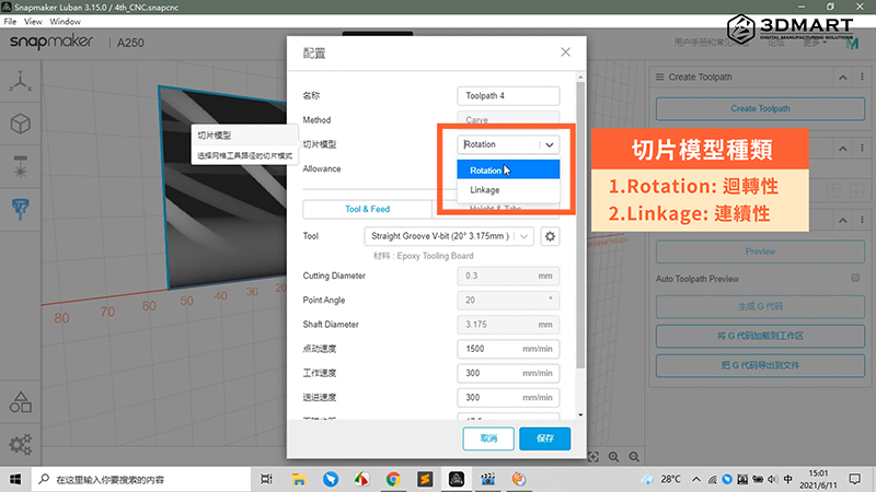 CNC雕刻的模型切片,主要有Rotation(迴轉(zhuǎn))、Linkage(連續(xù))兩種類型。