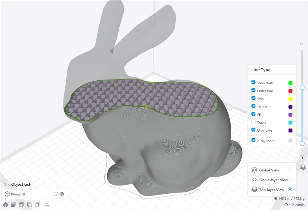 目前仍是開發(fā)中的暫定功能,僅支持一些參數(shù)??梢钥吹皆跊]有切片的情況下,畫布上列印的初步預視。