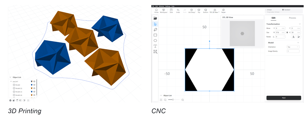 在Luban 4.4.0中,3D列印、雷射切割雕刻、CNC等三個功能可支援匯入3MF和AMF格式。當匯入具多個3D列印模型的3MF和AMF檔時,會作為一個群組被匯入並分層堆疊。一直以來STL檔是廣泛使用的格式。然而3MF格式可以更有效地滿足多色和多材料列印的需求。試著將3MF和AMF格式的3D列印模型匯入Luban。Try now!