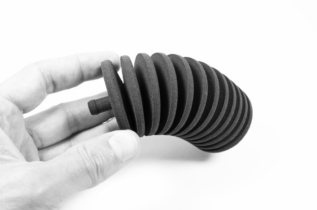 無(wú)論是Sinterit Lisa或者最新的Lisa Pro用戶,都能使用這款TPE粉末進(jìn)行3D列印,製作柔軟、彈性的零件。由於TPE有高回復(fù)性,任何需要抗衝擊或抗振的配件(如:避震器)都能使用TPE進(jìn)行3D列印並直接測(cè)試;此外,其防滑特性對(duì)於汽車工業(yè)製作如:防滑墊、飲料杯架、地毯、門窗戶封條或調(diào)節(jié)旋鈕…等軟性止滑配件也非常合適。