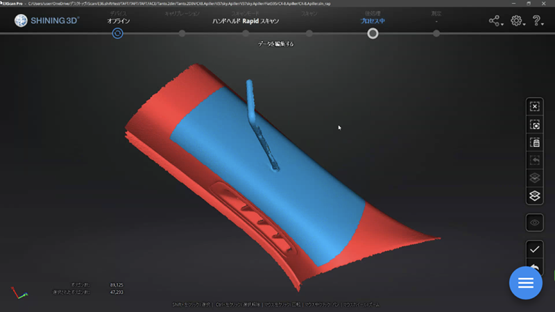 汽車A柱,在軟體中調(diào)整亮度後,可以順利掃描黑色的結(jié)構(gòu),或是使用