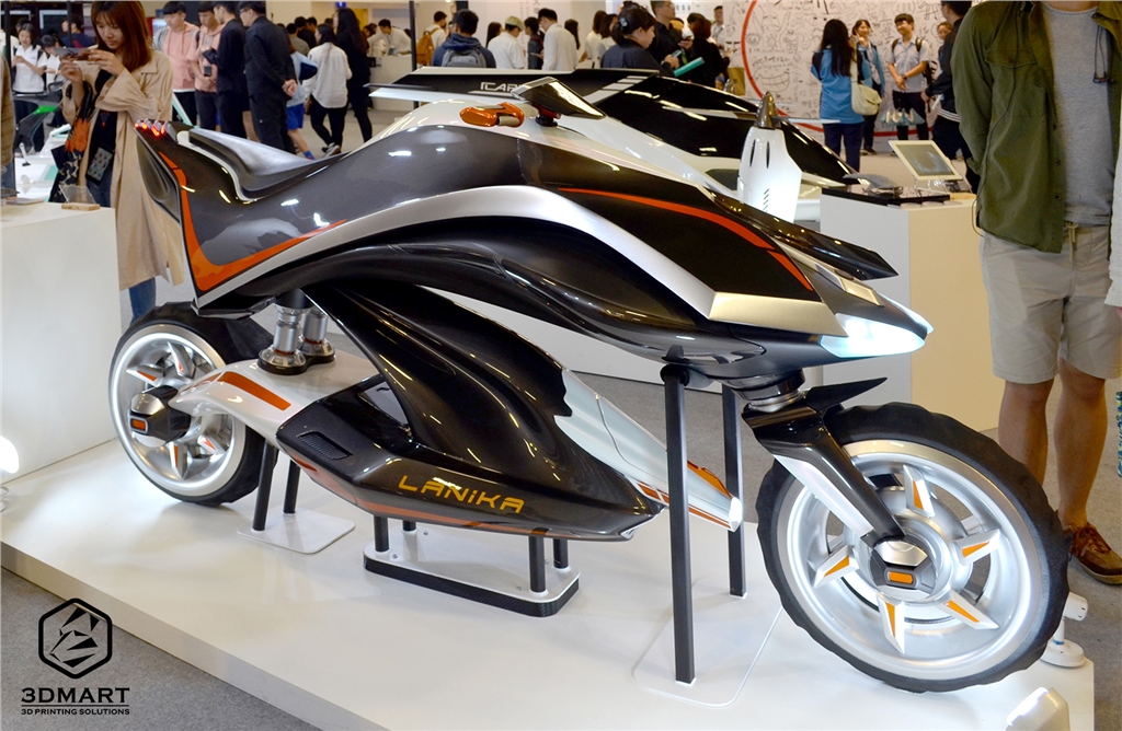 而最令人驚豔的就是超未來的跑車、水上摩托車模型…等,圖中作品的3D列印小模型在一旁可說是小巫見大巫,可以看到應(yīng)該是用單噴頭3D列印機(jī)製作,紋路比較明顯的部分如果使用雙噴頭系統(tǒng)的PVA水溶性支撐,表面會更漂亮。(延伸閱讀:臺灣新創(chuàng)設(shè)計力,前進(jìn)歐洲市場!)