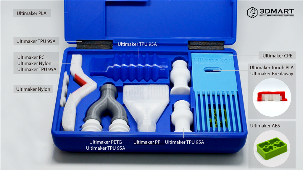 Ultimaker全系列零件工具箱-使用3D列印線材一覽圖