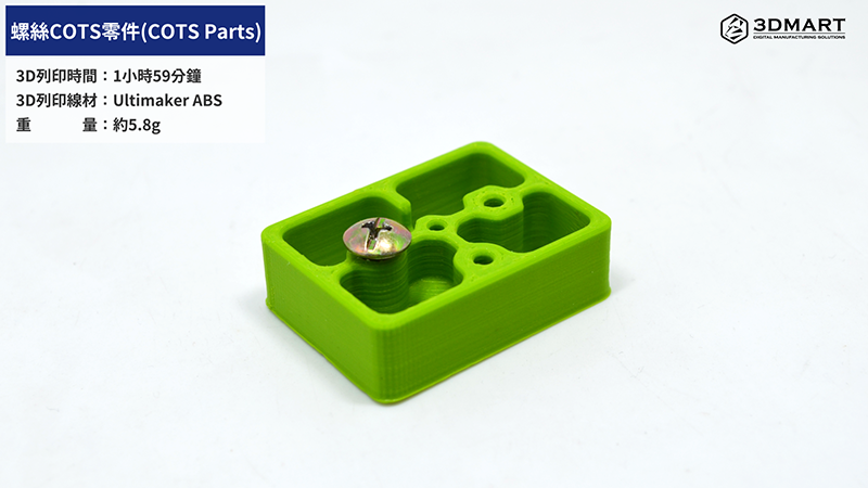 製作的螺絲COTS零件,高精度效果、可以將螺絲準(zhǔn)確置於零件中。(