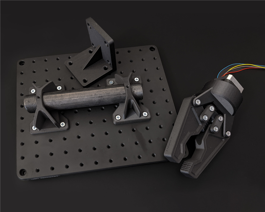 對於真正輕質的末端工具,不是列印單一個零件就夠了,當然要同時列印整個組件。展示碳纖維不僅可以提供所需的強度和耐久性,還可以提供製造複雜移動零件組合所需的準確度,從而提高機械臂的速度和機動性。