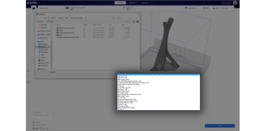 在新版Cura 4.3中能使用比之前更多的檔案格式,直接將CAD圖檔、3D掃描和3D模型檔集成到您的工作流程中,例如:Collada、GLTF、OpenCTM和PLY…等,還能從「Marketplace」下載更多外掛支援。