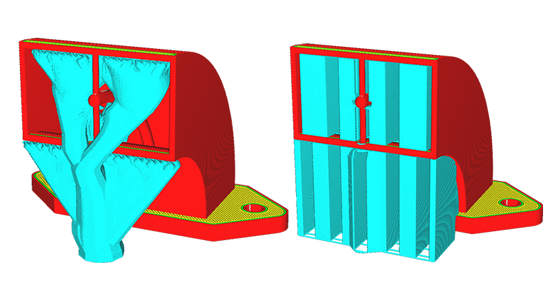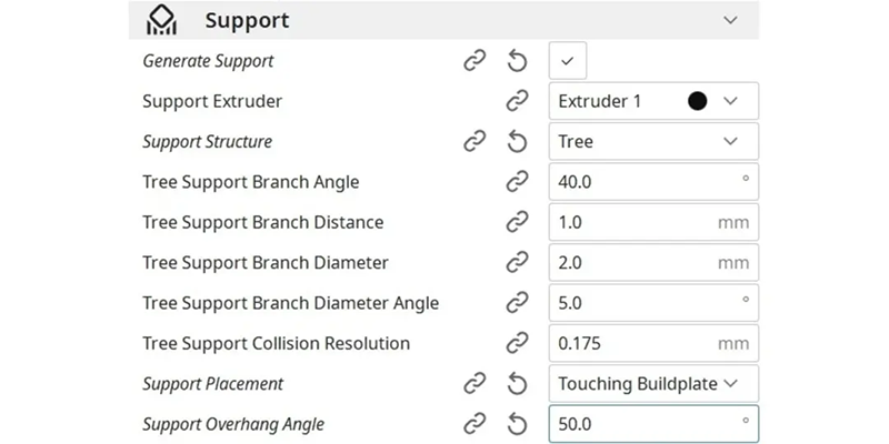 樹形支撐是Ultimaker Cura中的一種新形支撐結(jié)構(gòu),與標(biāo)準(zhǔn)支撐生成方式不同,樹形支撐會圍繞模型生長,底部厚度最厚,並隨著上升而變??;且以一定角度長出分支,每個分支只會有一個細(xì)尖處,會接觸本體物件需要支撐的部位,底部支撐會像樹幹般穩(wěn)固,上方又以細(xì)小結(jié)構(gòu)精準(zhǔn)支撐物件懸空結(jié)構(gòu),外觀就像一棵樹的樹枝一樣。