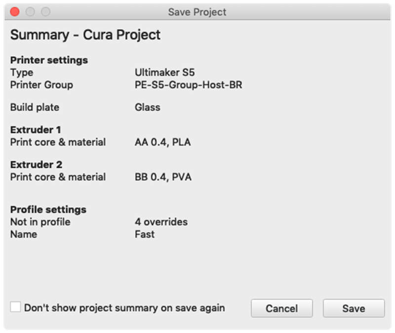 建議將檔案發(fā)送至Ultimaker 3D列印機後直接保存,可以確保檔案與發(fā)送的項目完全相同,包含連接的列印機、型號調(diào)整、列印配置文件。