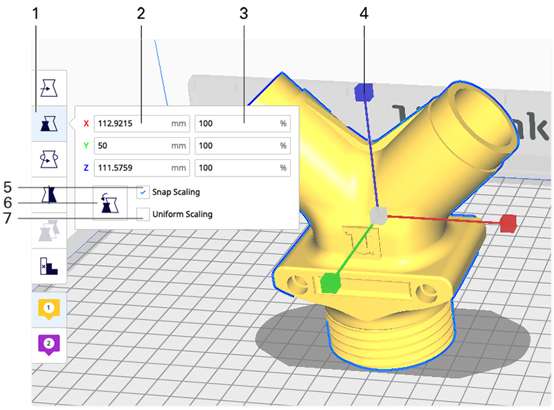 3D模型可以三種不同的方式進行縮放:毫米、百分比、XYZ軸拉桿。