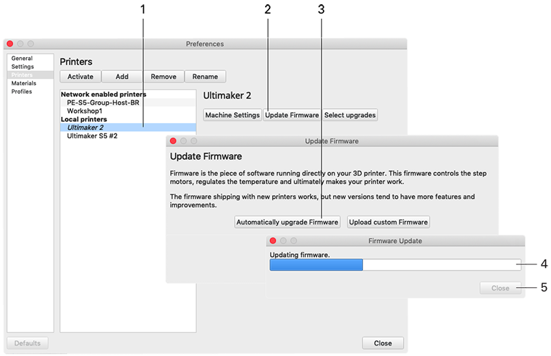 當列印機連接到網(wǎng)路時,會自動下載Ultimaker列印機的韌體(System>Maintenance>Firmware update)。
