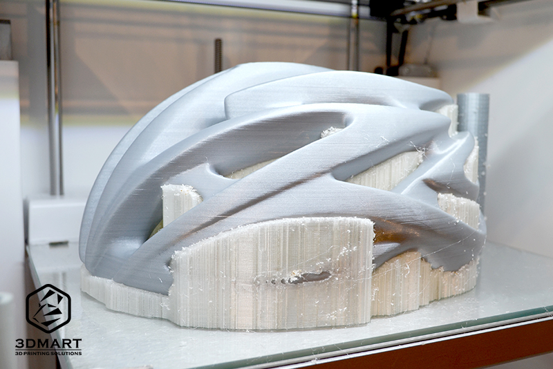 簡單以水溶解後,可以看到安全帽光滑的外觀、線材層層緊密堆疊,整體樣品原型的精度非常高而紮實!