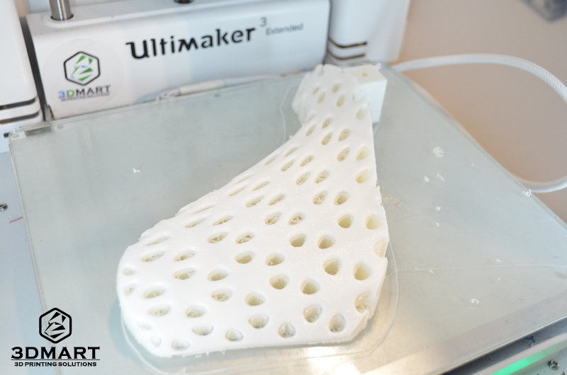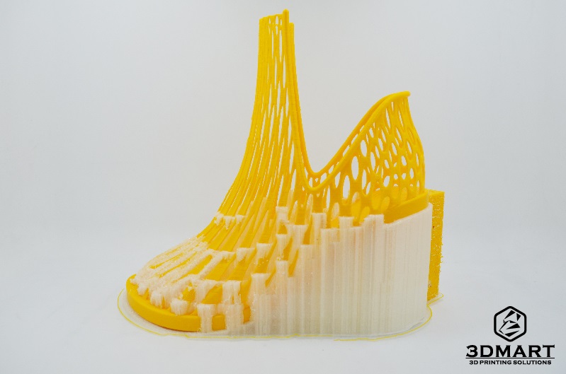 【3D列印應(yīng)用】新潮設(shè)計(jì)3D列印鞋款 3D列印的應(yīng)用方式非常多,像是公司開(kāi)發(fā)商品原型時(shí)會(huì)利用3d列印技術(shù),有些學(xué)校也會(huì)使用3d列印機(jī)來(lái)輔助生產(chǎn) 教材或完成學(xué)生的設(shè)計(jì)想法。 這次3DMart收到來(lái)自大學(xué)的工業(yè)設(shè)計(jì)系學(xué)生的3d列印代工委託,幫助完成他們的設(shè)計(jì)構(gòu)想,他們剛好都是設(shè)計(jì)鞋 款,各具不同的特色,我們將於此篇文章向大家介紹他們的設(shè)計(jì)歷程。 第一個(gè)的黃色設(shè)計(jì)款女用鞋是李同學(xué)的作品,主要是為了畢業(yè)專(zhuān)題所製作的作業(yè),設(shè)計(jì)的靈感結(jié)合樹(shù)根、骨骼密度 的造型以及網(wǎng)狀的血管,是一款十分優(yōu)雅的新穎設(shè)計(jì)女士鞋款,鎖定25-35歲具時(shí)尚感的輕熟女族群 李同學(xué)表示會(huì)使用3d列印技術(shù)完成此鞋款,是因?yàn)榇诵幽P驮谠煨蜕虾苎}雜並且要求高細(xì)緻度,在製程上面選擇 3d列印機(jī)印製也比較簡(jiǎn)單,並且在最終完成度也很高。 由於設(shè)計(jì)上有許多鏤空的部分,必須使用Ultimaker3雙噴嘴3d列印機(jī),讓PLA搭配水溶性支撐材PVA,不須擔(dān)心有 拆不完的支撐以及支撐拆除後的粗糙表面。 在Cura的設(shè)定上我們盡可能地將PVA的用量調(diào)至最低,避免材料的浪費(fèi)並節(jié)省泡水的時(shí)間,總共的列印時(shí)間約為2天。 圖為正在3D列印的黃色女用鞋 (列印層厚:0.15mm 填充率:30%) 這次決定設(shè)計(jì)鞋子作為畢業(yè)製作是來(lái)自老師的提議,由於聯(lián)合大學(xué)工設(shè)系所在工專(zhuān)時(shí)期是以鞋子設(shè)計(jì)為主要項(xiàng)目, 後來(lái)才轉(zhuǎn)變?yōu)橐援a(chǎn)品設(shè)計(jì)為主,此次有種想重拾初衷再次挑戰(zhàn)過(guò)去鞋子設(shè)計(jì)的強(qiáng)項(xiàng)。