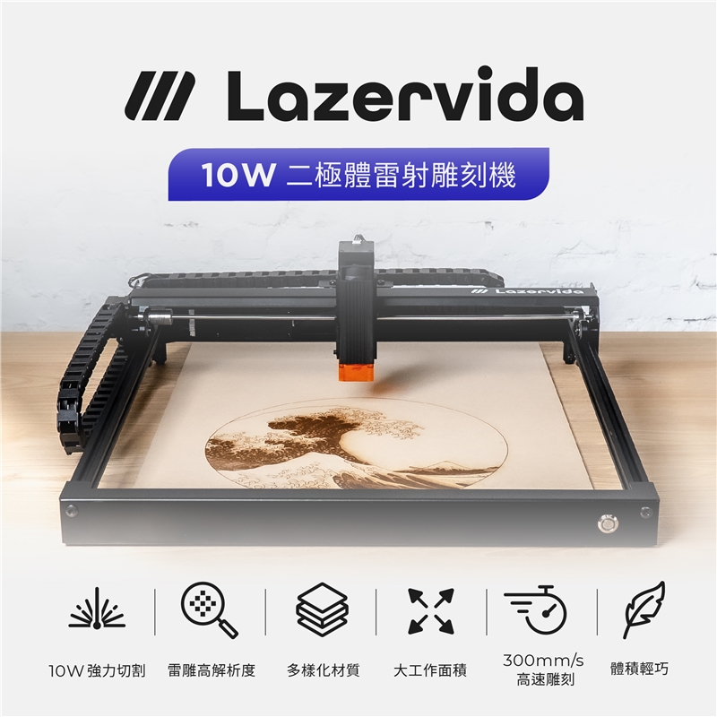 Lazervida 二極體雷射雕刻機(jī)提供小型企業(yè)、創(chuàng)客、設(shè)計師及其相關(guān)愛好者使用。輕巧的外型,強(qiáng)大的功能!不到一小時即可完成組裝,並開始雕刻切割於各式材質(zhì)實現(xiàn)創(chuàng)意!