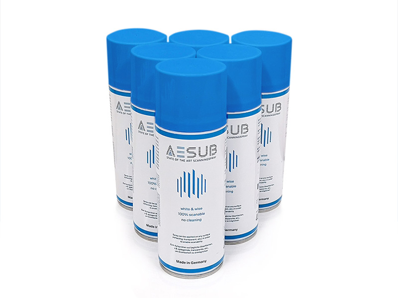 AESUB Blue 3D掃描噴粉(顯像劑)層厚介於5-15µm,可以自動揮發(fā),並由掃描專家開發(fā)及證實,噴粉成分不含色素、不會破壞物件,可以薄而均勻的分布在掃描物體表面;掃描完成後無不需要花時間清潔,有效節(jié)省時間、成本,同時提高工作效率,不管是透明、反光物件都能輕鬆掃描3D掃描。
