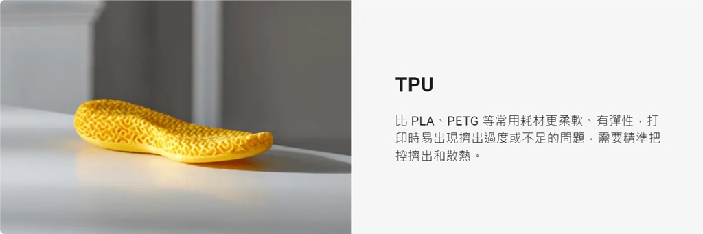 適用於 TPU 等柔性材料,成品易拆除。 適用於 PLA、PETG 等常規(guī)材料,粘附效果佳。