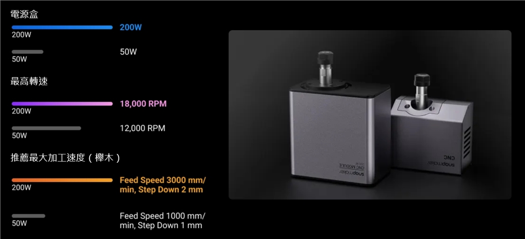 CNC性能提升同樣帶來(lái)更豐富的材料選擇。 200W CNC模組可以輕鬆完成硬木(櫸木、胡桃木)和玉石等硬質(zhì)材料的精密加工。