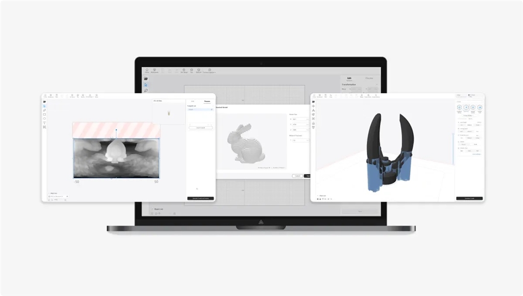 官方配套軟體Snapmaker Luban提供簡(jiǎn)單好使用的3D列印、雷射光加工和 CNC加工設(shè)置操作流程。三種加工方式,一款軟體就能搞定!新手老手都能輕易上手!
